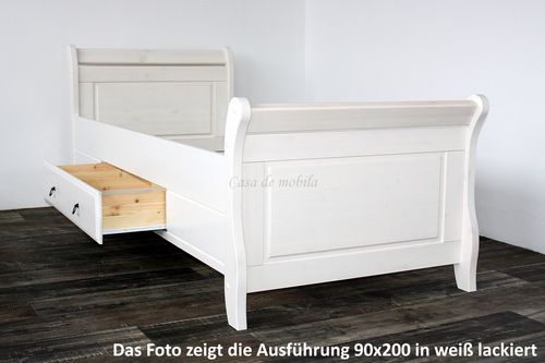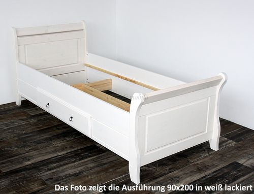 Bett mit Schublade 90x200cm massiv gelaugt geölt