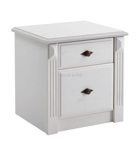 Nachtschrank mit Schubladen 53x53x46cm Dora Kiefer massiv weiß lackiert