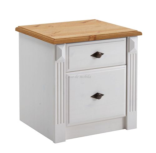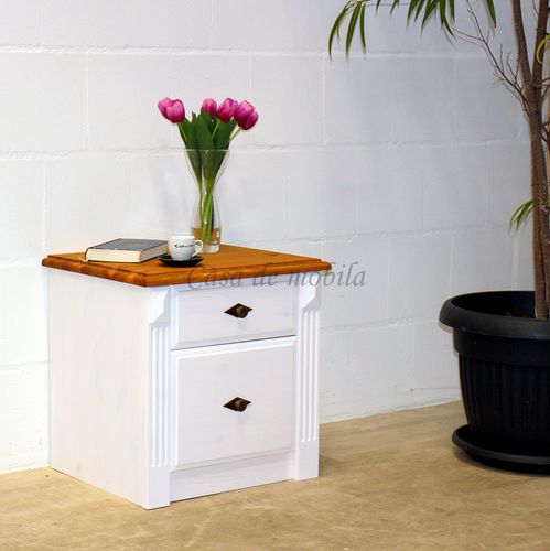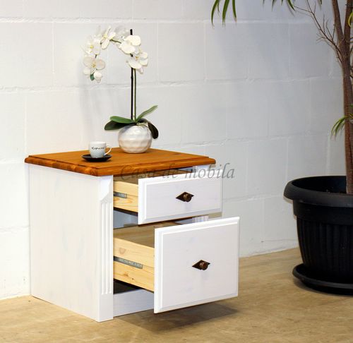 Nachtschrank mit Schubladen 53x53x46cm EVA Kiefernholz weiß gelaugt geölt