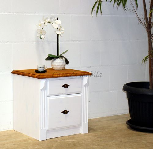 Massivholz Nachtschrank mit schubkasten Kiefer massiv weiß gelaugt geölt
