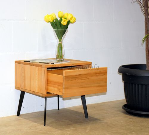 Nachtkommode mit 1 Schublade, Metallfüßen M 3, Kernbuche massiv geölt