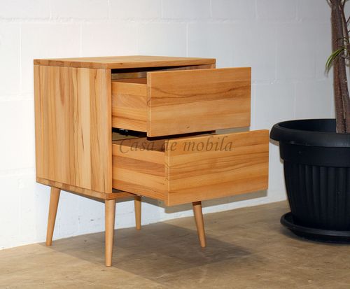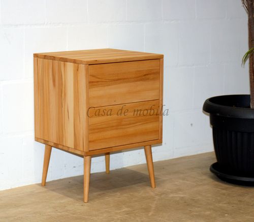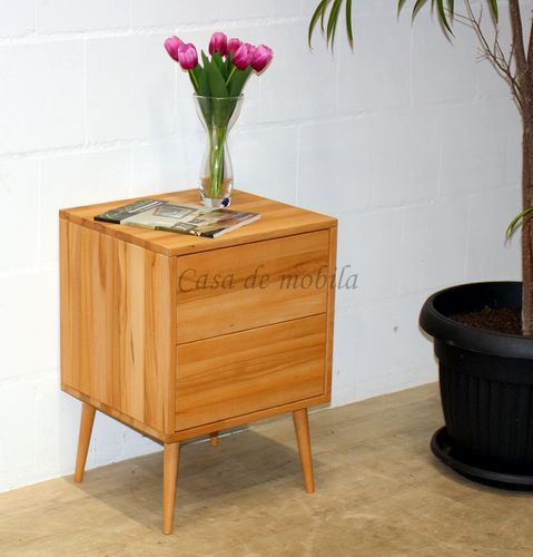 Nachtkommode mit Schubladen und Holzfüßen Kernbuche geölt