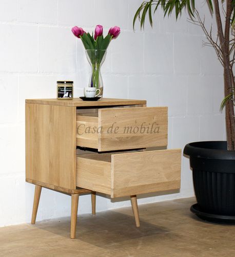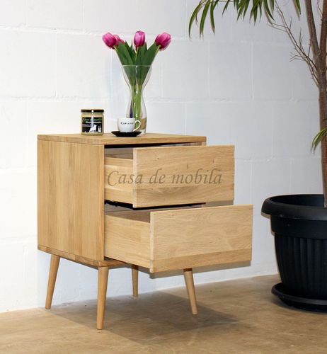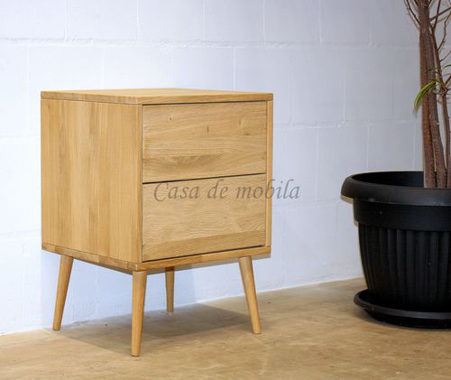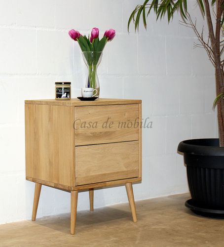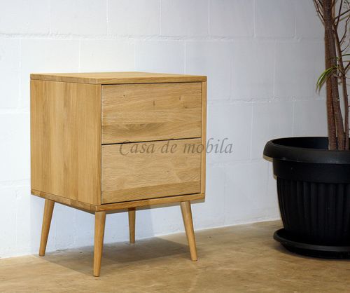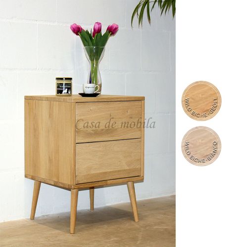 Nachtschrank mit 2 Schubladen WALKIN 46x66x42cm Eiche geölt Holzbeine