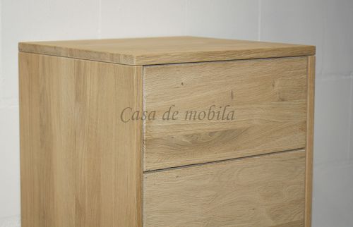 Gefertigt aus Wildeiche massiv (natur oder bianco geölt), bringt diese Nachtkommode aus Echtholz die charaktervolle Maserung des Holzes besonders schön zur Geltung. Optional ist die Oberfläche auch sandgestrahlt erhältlich – für eine noch intensivere Struktur und Haptik.