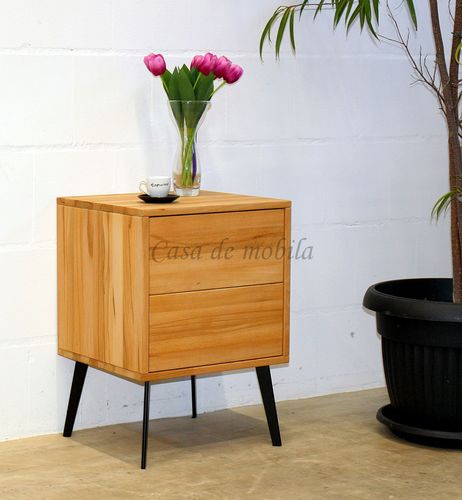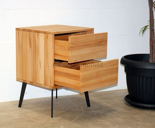 Nachtschrank mit 2 Schubladen WALKIN 46x66x42cm Buche geölt Metallfüße M3