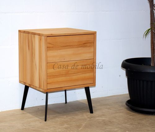 Nachtkommode mit 2 Schubladen, Metallfüßen M3 Kernbuche geölt