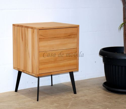 Nachtkommode mit Schubladen und Metallfüßen Massivholz geölt