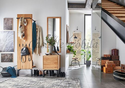 Diese hochwertige Nachtkommode aus Massivholz verbindet skandinavisches Design mit moderner Industrial-Optik. Der stilvolle Echtholz Nachtschrank mit zwei Schubladen stammt aus dem Dielenprogramm WALK IN des dänischen Herstellers Tjørnbo und überzeugt durch klare Linien sowie langlebige Qualität.