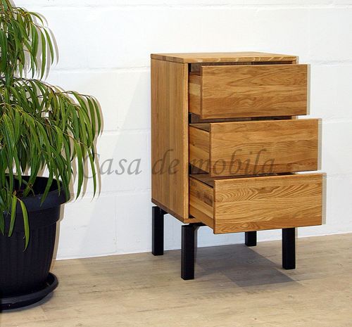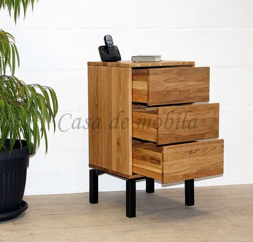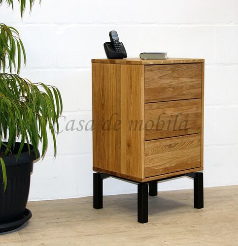 Nachtschrank mit 3 Schubladen WALKIN 46x85x42cm Eiche geölt Metallbeine M8