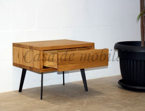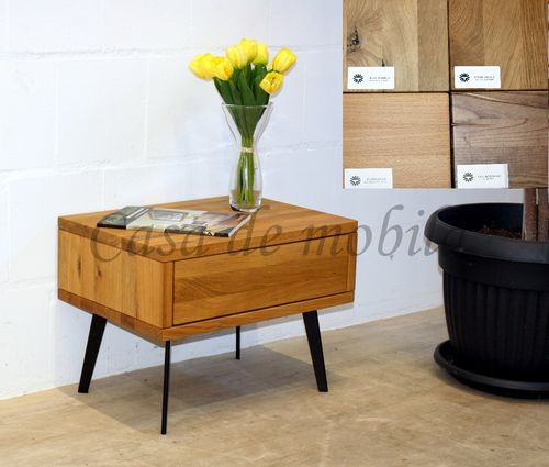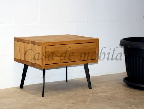 Nachtschrank mit Schubkasten MODERN SLEEP 56x43x40cm Eiche oder Buche massiv Beine Metall schwarz