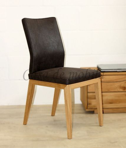 Massivholz Stuhl Laura mit Polster in Lederoptik