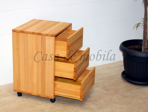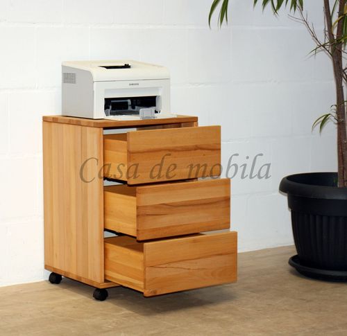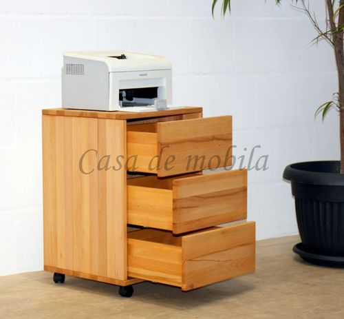 Rollcontainer mit 3 Schubladen Kernbuche massiv geölt
