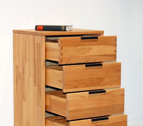 Rollcontainer mit 4 Schubladen schmale Tiefe Kernbuche massiv natur geölt