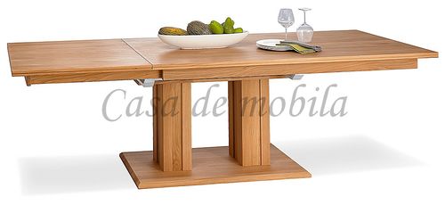 Rustikaler, ausziehbarer Esszimmertisch aus Asteiche - Mit zwei Säulen