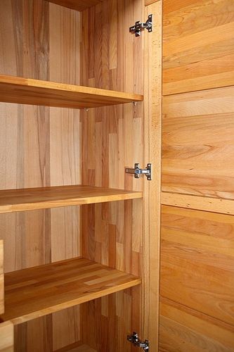 rechts: 1 schmale Holztür mit 2 Holzeinlegeböden
