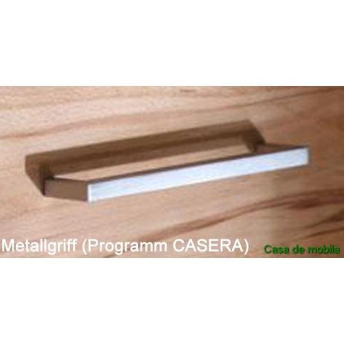 Der Mehrzweckschrank Casera verfügt links über eine breite Holztür mit einem Holzeinlegeboden, sowie drei Schubladen und rechts befindet sich eine schmale Holztür mit zwei Holzeinlegeböden.  Bei den Griffen können Sie zwischen Holz oder Metall wählen. Der Geschirrschrank ist in 3 verschiedenen Holzarten erhältlich.