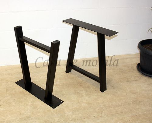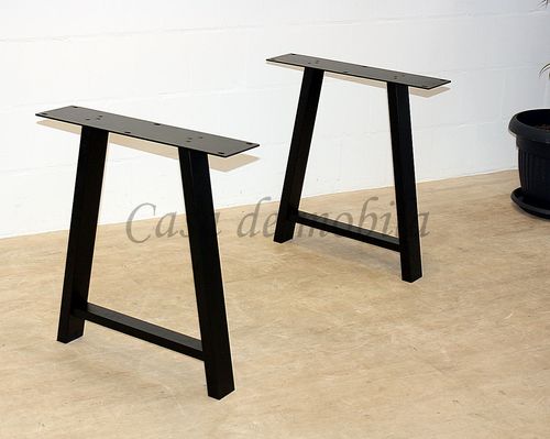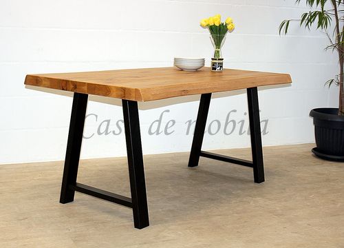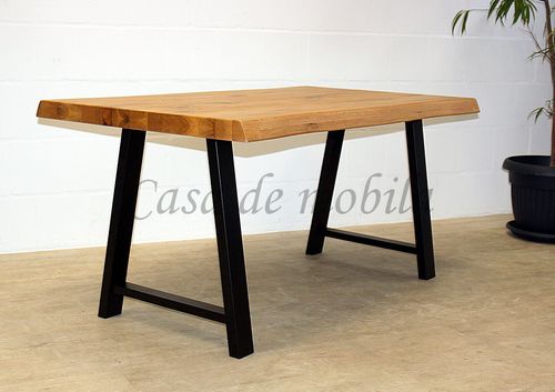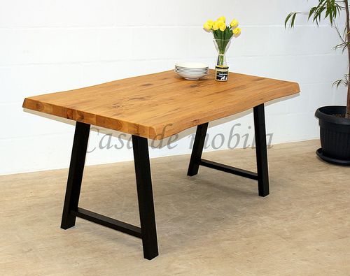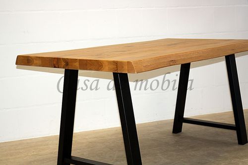Esstisch klein mit Baumkante und A-Metallbeinen schwarz