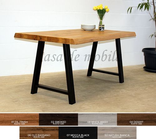 Massivholz Schreibtisch mit Baumkante und metallbeine 140x76x80cm ROMA HAMPLETON rustikale Eiche massiv