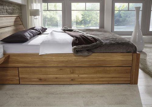 Bett mit 2 Schubladen 180x200x45 cm, Beine 3, Kopfteil 1, Eiche massiv geölt