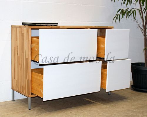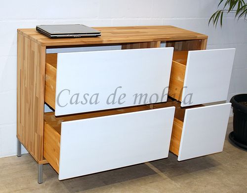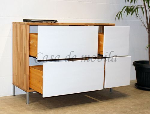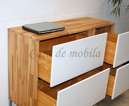 Kommode mit Schubladen CONTRA 134x97x46cm Kernbuche geölt weiß