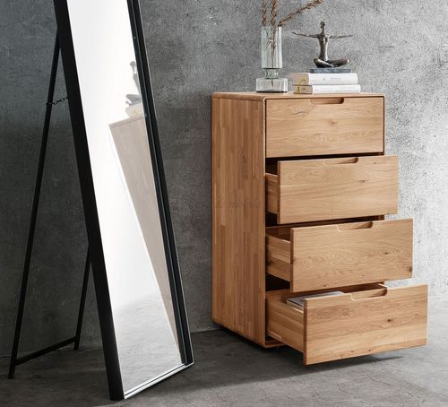 Massivholz Schubladenkommode schmal Gose 51x91x40cm Wildeiche massiv natur geölt