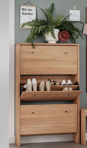 Dieser Schuhschrank verfügt über 3 Klappen und ist für ca. 18-24 Paar Schuhe geeignet.