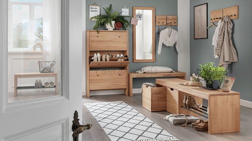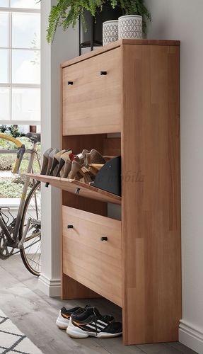 Massivholz Schuhkipper mit 3 Klappen Gomma 82x133x27cm Kernbuche massiv natur geölt