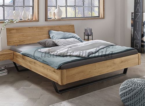 Massivholz Schwebebett Wildeiche massiv geölt mit schwarzen Metallkufen