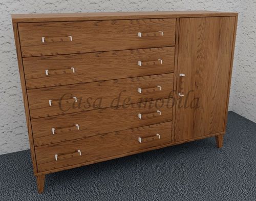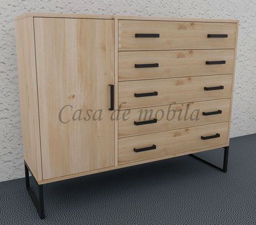 Sie ist mit den fünf breiten Schubladen und der Holztür ein perfektes Möbelstück für Arbeitszimmer, Büro, Schlafzimmer, Wohnzimmer, Diele und Flur.