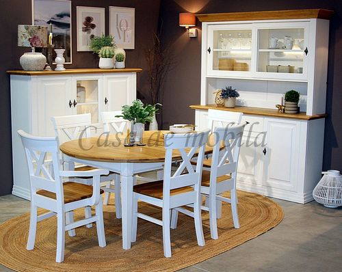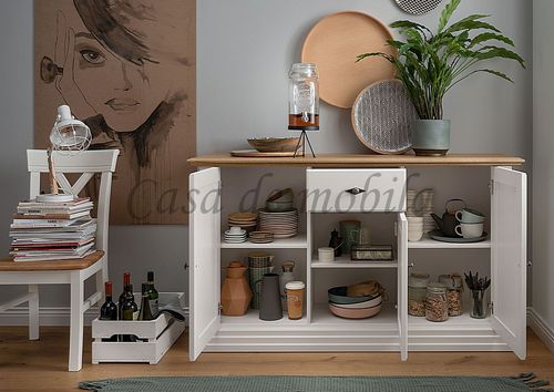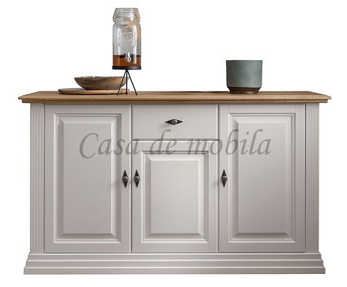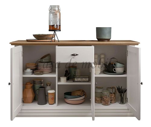 Landhausstil Sideboard 3-türig aus massiver Kiefer weiß und Eiche