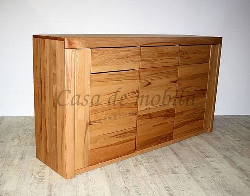 Kommode 3-türig Horizont 173x94x45cm Kernbuche massiv Natur geölt Holzgriffe