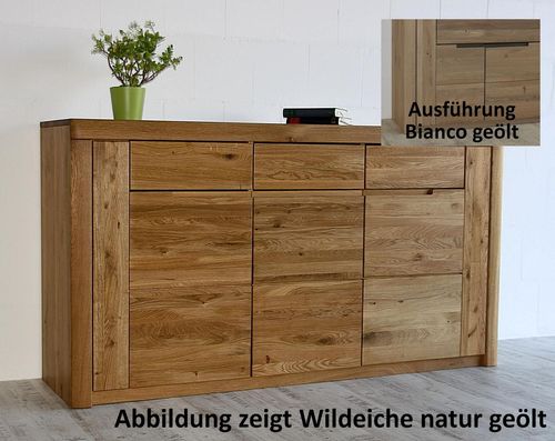 Massivholz Anrichte 3türig HORIZONT 173x94x45cm Wildeiche massiv Bianco geölt