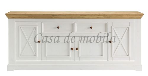 Landhausstil Anrichte mit vier Türen weiß und eichefarbenem Absatz