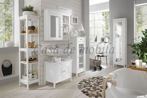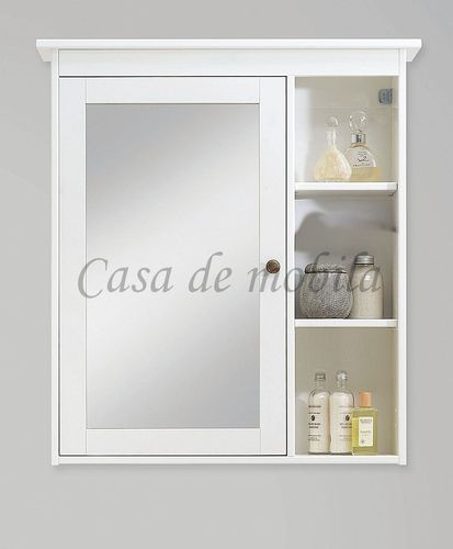 Spiegelschrank mit regal Kiefer massiv weiß lasiert