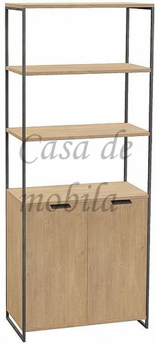 Standregal mit schwarzen Metallbeinen und 2 Holztüren