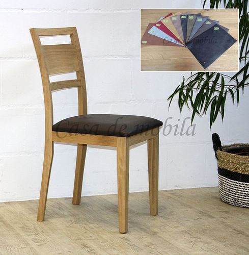 Massivholz Stuhl Lara mit Polstersitz Lederimitat Eiche massiv