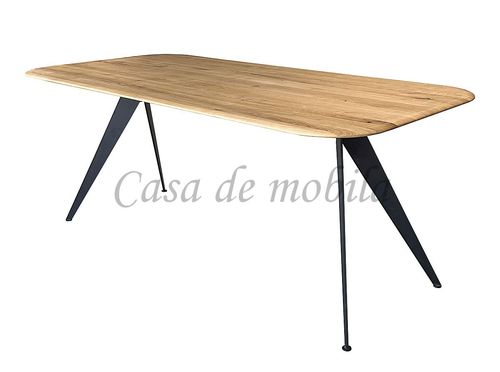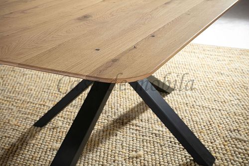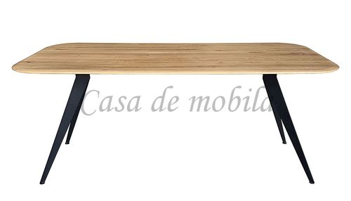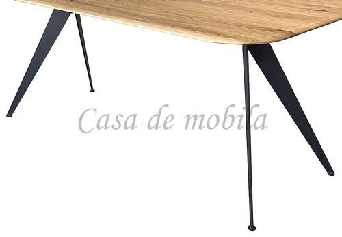 Der Esstisch ist in 3 verschiedenen Größen lieferbar. Optional können Sie eine Ansteckplatte bestellen. Die Tischplatte ist mit einer runden Holzkante Radius 80 gefertigt, das moderne Tischgestell ist aus schwarzem Metall.