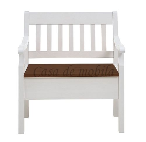 Massivholz Truhenbank 83 - Kiefer 2-farbig weiß / bernstein