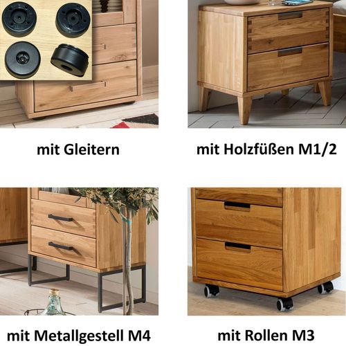 Lowboard Kernbuche oder Eiche massiv natur, bianco oder tabak