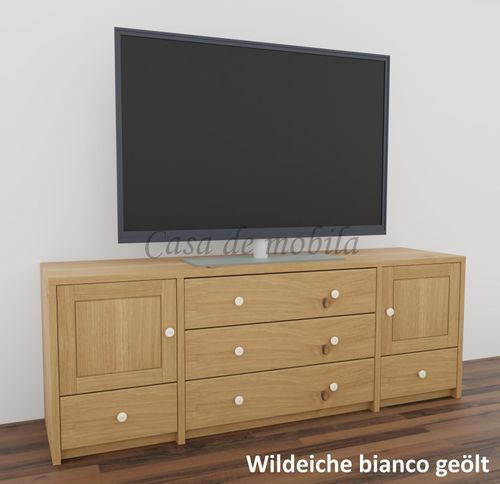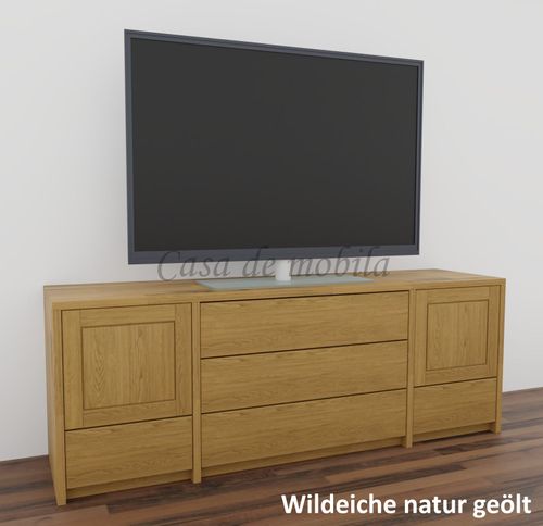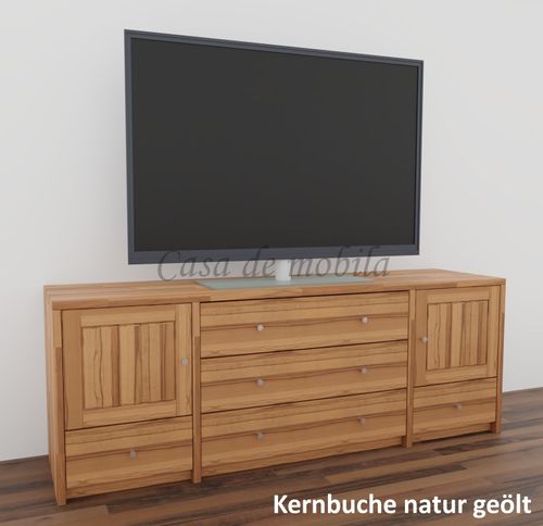 Massivholz Fernsehkommode CONTRA 178x65x46cm kiefer,kernbuche,wildeiche massiv natur oder bianco geölt
