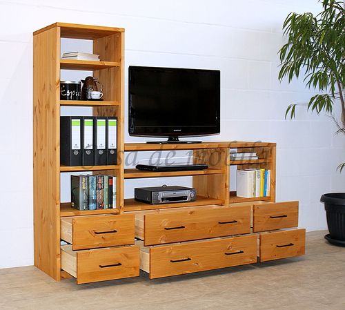 Phono-regal mit schubladen Contra 178x161x46cm Massivholz geölt