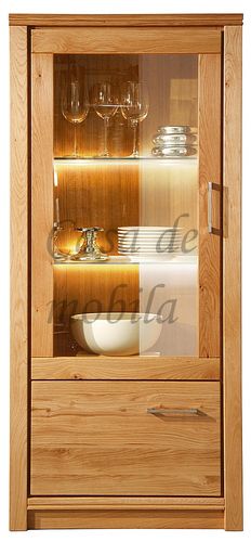 Ein edel und hochwertig gestaltete Vitrine, gefertigt aus rustikaler Asteiche, entweder Natur oder bianco geölt