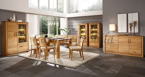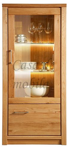 Ein edel und hochwertig gestaltete Vitrine, gefertigt aus Rustikaler Asteiche, entweder Natur oder bianco geölt. Diese Vitrine besticht durch ihre hohe Vielseitigkeit und Einsetzbarkeit. Hinzu kommen zwei Türen, eine Holztür und eine Holz-Glastür sowie zwei Glaseinlegeböden. Hergestellt aus bestandsgepflegten Forsten, bietet diese Vitrine das Maximale an Wohnkomfort und überzeugt in ihrer herausragenden Qualität. In diesem schicken Möbelstück steckt viel Handarbeit und Liebe zum Detail. Dieses lebendige Naturprodukt zeichnet sich durch seine unverwechselbaren Echtheitsmerkmale aus - Maserungen, Verwachsungen, Unregelmäßigkeiten sowie Spannungen sind typische Eigenschaften und Sie dürfen sich somit auf ein echtes Unikat freuen.