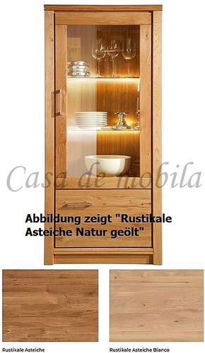 Ein edel und hochwertig gestaltete Vitrine, gefertigt aus Rustikaler Asteiche, entweder Natur oder bianco geölt