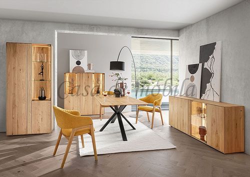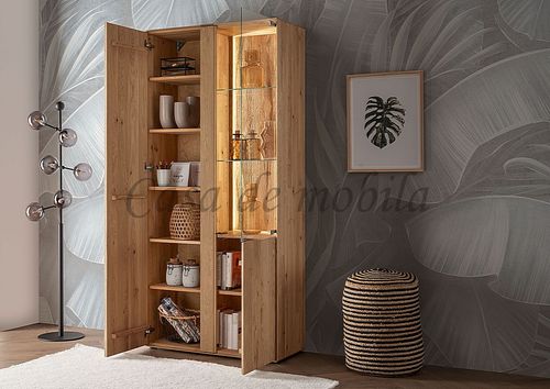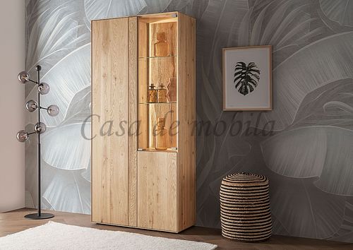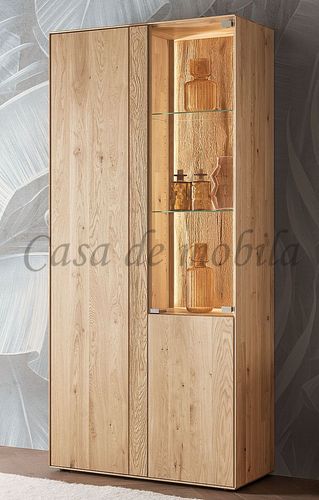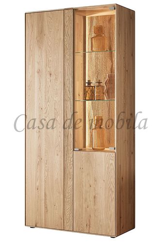 Vitrinenschrank HERZBERG 92x196x39cm Asteiche massiv geölt sandgestrahlt beleuchtet