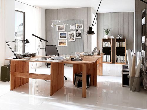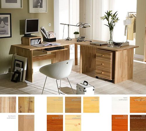 Diese Massivholz-Büromöbel werden wahlweise aus Kiefer, Kernbuche oder Wildeiche gefertigt.