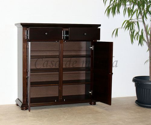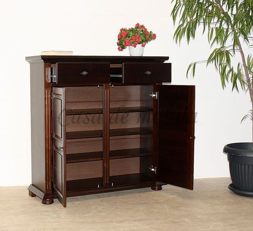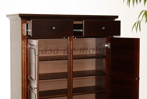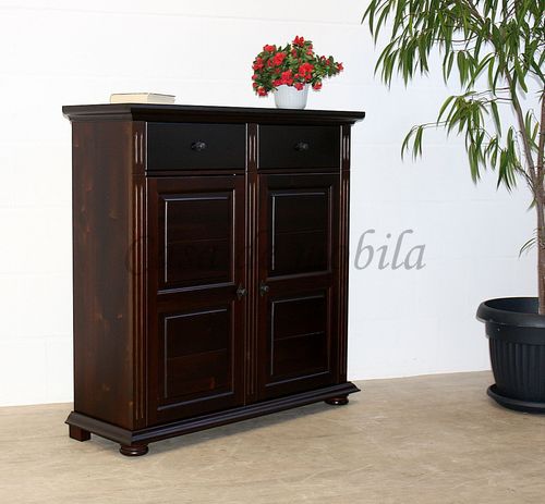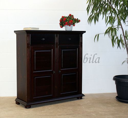 Echtholz Schuhkommode aus massivem Fichtenholz nussbaumfarben lackiert