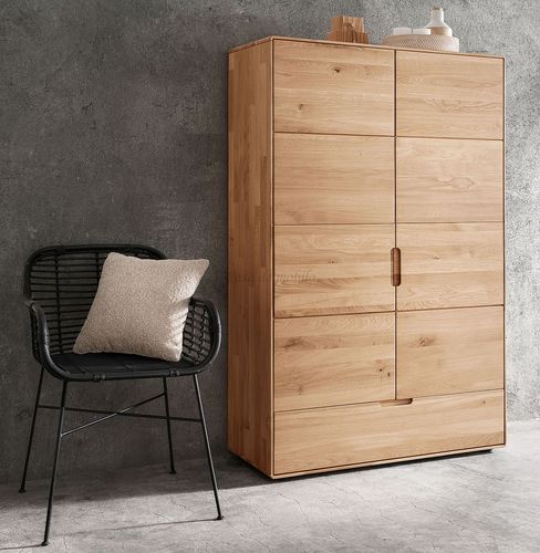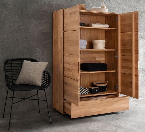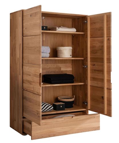 Dieser exquisite Wäscheschrank mit abgerundeten Ecken aus massiver geölter Wildeiche vereint natürliche Eleganz mit funktionalem Design. Die hochwertige Verarbeitung und das robuste Material machen sie zu einem langlebigen Möbelstück, das in jedem Raum einen Hauch von Natur vermittelt.