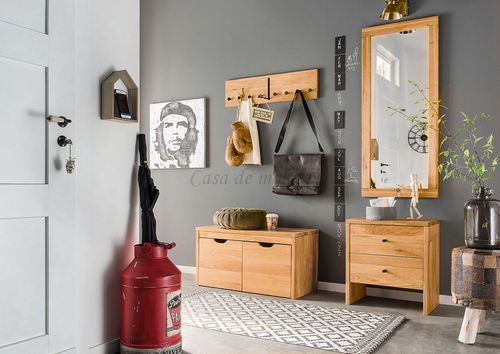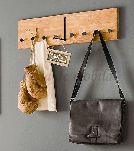 Wandgarderobe - Hakenleiste - Vollholz - Beschläge schwarz