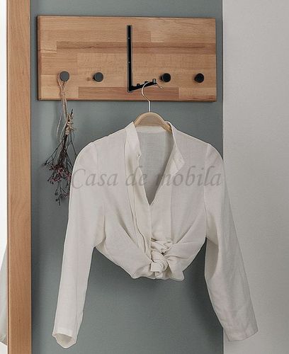 Diese Wandgarderobe verfügt über 4 Kleiderhaken. Außerdem kann in der Mitte eine Halterung für 3 Kleiderbügel ausgeklappt werden.